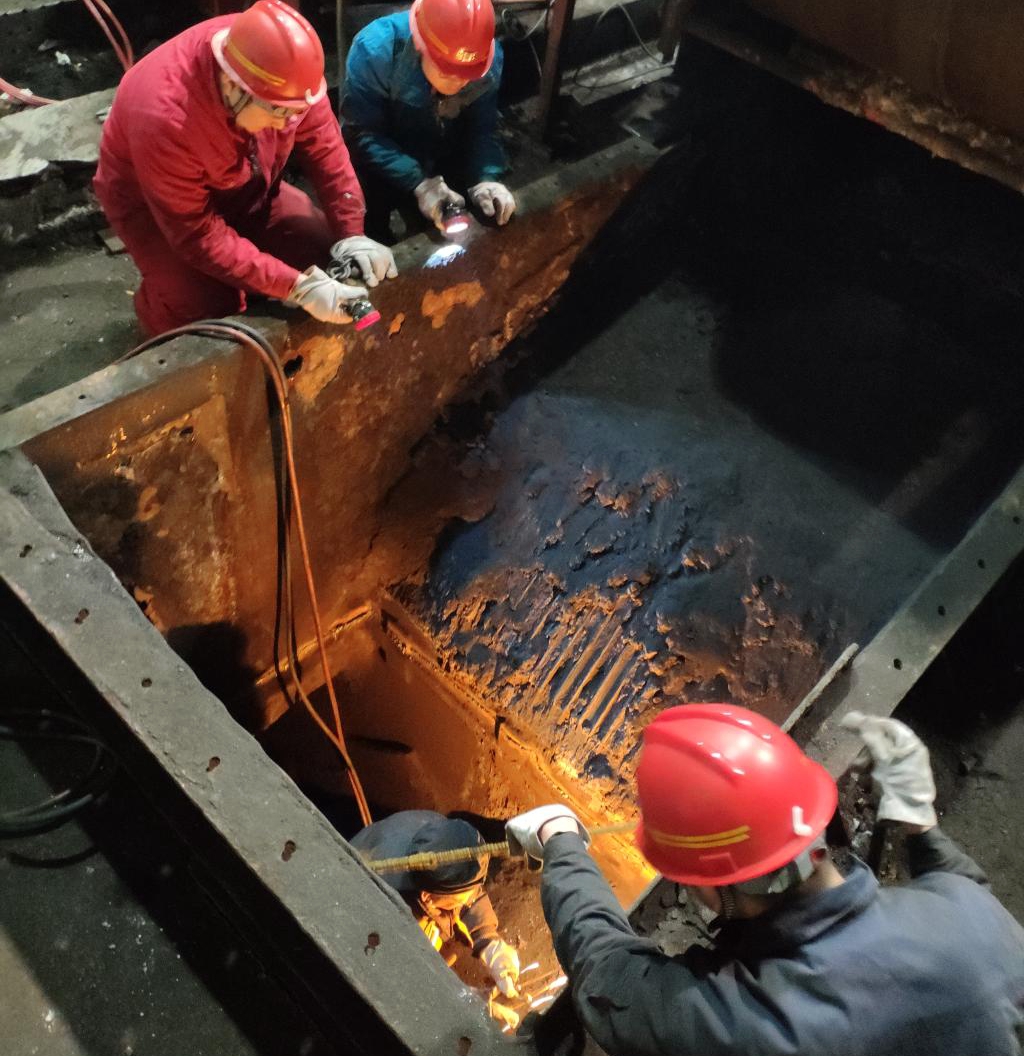 “舍小家,為大家,服務(wù)礦山,精準(zhǔn)高效!”這是該公司煤專車間在春節(jié)期間的工作口號(hào)。所有干部職工克服了作業(yè)時(shí)間緊、任務(wù)重、溜煤槽整體拆除難度大、吊裝位置狹小等困難,特別是井下溜煤槽拆除、安裝工作,受作業(yè)地點(diǎn)限制,自重接近10噸的溜煤槽,全部由人力切割拆除、對(duì)焊安裝,運(yùn)輸大小鋼板近200塊,白夜班24小時(shí)不休,確保按時(shí)保質(zhì)完工。