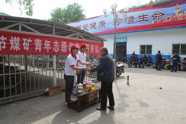 該礦團員青年堅持服務企業(yè)讓青春閃光,每天安排各單位團員青年輪流在井口開展為期一個多月的“送安全茶水”活動,立足一線工作實際,在中午氣溫較高、人流量較大的時間段,團員青年們早早的拿上提前準備好的開水、口杯、茶葉、涼杯、桌子等物品,在井口等候即將下井的工人師傅,他們還特意在花茶的基礎上,還專門增加了苦蕎、冰糖菊花茶,分別沖泡在大大的涼杯里,在炎炎夏日讓上下班來往過路的干部職工家屬感受到團員青年的“一份愛心”,既解渴又暖心。