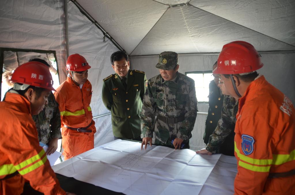 上午10時(shí)42分,第一批指戰(zhàn)員全部到達(dá)事故現(xiàn)場(chǎng)。帶隊(duì)指揮員向施工方詳細(xì)了解災(zāi)情,并成立現(xiàn)場(chǎng)指揮部,馬上派出偵查小隊(duì)前往事故地點(diǎn)進(jìn)行認(rèn)真?zhèn)刹?,進(jìn)一步了解災(zāi)區(qū)情況。由于災(zāi)情復(fù)雜、電力受損嚴(yán)重、現(xiàn)場(chǎng)條件極為簡(jiǎn)陋,救援所需時(shí)間較長(zhǎng)。為在第一時(shí)間救出被困人員,最大限度降低事故損失,救援指揮部根據(jù)災(zāi)情和現(xiàn)場(chǎng)指揮部請(qǐng)求,決定派出第二批指戰(zhàn)員,出動(dòng)救援裝備保障車、發(fā)電照明車、野外生活保障車和工具車攜帶所需裝備前往支援,其他指戰(zhàn)員迅速轉(zhuǎn)為值備班隊(duì)隨時(shí)待命。