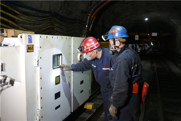 身背鉗工工具,掛上保險繩,穿上棉服工作衣,悶熱天氣里身體稍動立刻就會汗流浹背。鉗工“四人組”屏氣凝神緊盯法蘭盤,看準(zhǔn)位置“穿針引線”,四條螺絲同時一穿而過。一院之隔的南風(fēng)井壓風(fēng)機房,機電車間另一班組四大機械電工班,在“技術(shù)尖兵”萬平的帶領(lǐng)下正在檢修維護電氣設(shè)備,“汪洋,交給你一個細法活,去給配電柜除塵”。2天時間,機電車間分別要獨立和協(xié)作其他單位共完成6項檢修項目,工業(yè)廠區(qū)從南至北,地面井下同時施工,涉及檢修維護千余米管線,百余臺大型設(shè)備,其作業(yè)面是本次檢修覆蓋范圍最廣的單位。零散、高空、精密作業(yè)和高溫酷暑一起考驗著車間職工的耐心、意志和技術(shù)。跟班在瓦斯抽放泵房檢修現(xiàn)場的機電車間主管許宏臣講道,“出煤關(guān)鍵看機電,我們將全部技術(shù)骨干配備到各個檢修點,管理干部24小時盯守,一定能夠按時完成任務(wù)”。