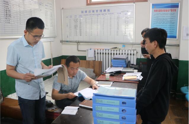 隨后,檢查組成員按專業(yè)分組分工,分別查看了安全分級管控、安全培訓(xùn)、“一通三防”、地測防治水、應(yīng)急預(yù)案及井下作業(yè)施工圖紙等地面基礎(chǔ)資料。