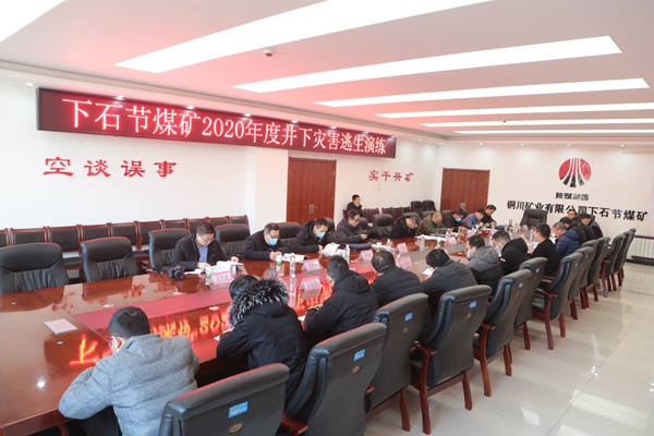 12月24日,下石節(jié)煤礦進(jìn)行模擬229工作面發(fā)生突水事故應(yīng)急救援演練,檢驗(yàn)礦井的應(yīng)急反應(yīng)水平,進(jìn)一步提高礦井防災(zāi)抗災(zāi)能力和職工搶險避災(zāi)能力。公司總調(diào)度室、救護(hù)大隊(duì)、生產(chǎn)、機(jī)電管理、通風(fēng)、地測、安監(jiān)、宣傳等部門觀摩此次演練。