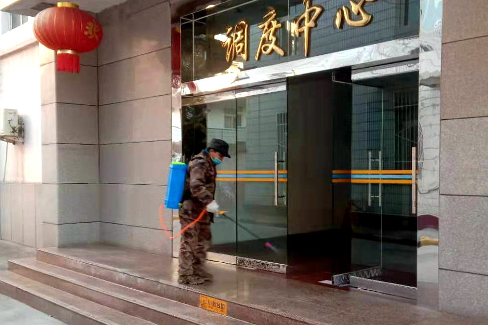 社區(qū)管理中心職工趙宏偉,春節(jié)期間每天上班后,背起噴霧器對(duì)礦區(qū)辦公樓進(jìn)行消毒,用自己的不懈努力創(chuàng)造安全健康的辦公環(huán)境。