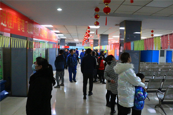 吃元宵、賞花燈、猜燈謎,是元宵節(jié)一系列傳統(tǒng)民俗活動。該礦候罐大廳內,一盞盞火紅的燈籠,一串串喜慶的中國結排排懸掛,融合安全知識、生活常識的五彩繽紛的燈謎掛滿四周,節(jié)日氣氛濃厚,吸引上下班的職工紛紛駐足賞燈猜謎。
