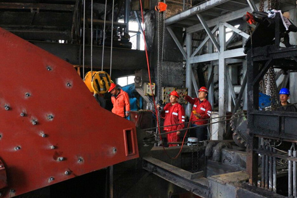 受場地空間限制,拆除的舊件需要運出廠房后,再進行新部件的安裝更換。設備進出施工作業(yè)區(qū)困難,安裝精度要求高,立輪無法進入排矸車間作業(yè)區(qū),礦分管領導及相關部門專業(yè)技術人員與施工方積極對接,研究探討、相互配合,提前打通排矸車間側(cè)墻,清除障礙物,改進吊裝方案,作業(yè)現(xiàn)場調(diào)整傾斜角度,在雙方的共同努力下,這個龐然大物順利運輸至安裝位置,大大提高了施工效率。 該項目的順利施工直接影響到礦井的經(jīng)濟效益,為按期保質(zhì)完成施工任務,該礦各級管理部門負責人堅持24小時跟班到作業(yè)現(xiàn)場,全程陪護式對安全進行監(jiān)管,并提出技術性指導。