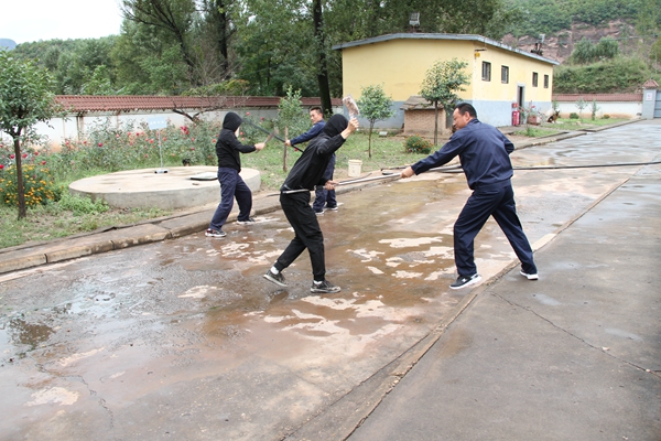 按照指揮部指示,該礦調(diào)度室立即報警,并調(diào)度礦綜治辦、救護隊及物管中心人員迅速趕往該礦地面火藥庫。 15:05時,經(jīng)過激烈的斗爭后,兩名“歹徒”被鋼叉、警棍等防暴裝備控制,銅川市虹橋分局下石節(jié)派出所車輛迅速趕往現(xiàn)場,協(xié)同保安隊員將兩名“歹徒”成功制服。