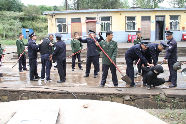 最后,該礦物管中心和綜治辦主管人員,協(xié)助市紅橋分局下石節(jié)派出所對庫房門窗、所儲存的炸藥、雷管等物品進行了清查后確定賬物相符。一場驚心動魄的防恐、反恐、防盜搶事故演練圓滿結(jié)束。