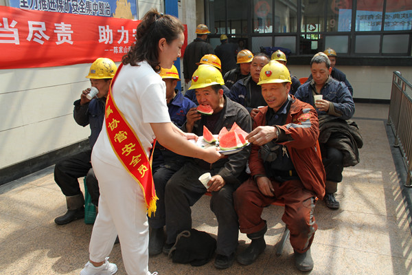 該礦工會組織女職工、家屬協(xié)管員們主動出擊,充分利用職工進班會時間,走進基層一線,為職工獻上精心準備安全文藝節(jié)目,到井口送安全福袋等活動,讓一線職工在輕松、歡笑中學習安全知識,提升安全素質(zhì),為礦井安全筑牢安全屏障。
