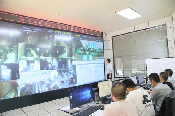 當(dāng)日下午14時(shí),在五樓調(diào)度信息中心,隨著總指揮一聲令下,礦井反風(fēng)演習(xí)全面開(kāi)始。相關(guān)人員、礦山救護(hù)隊(duì)員等按照演習(xí)方案有序進(jìn)入各自崗位。