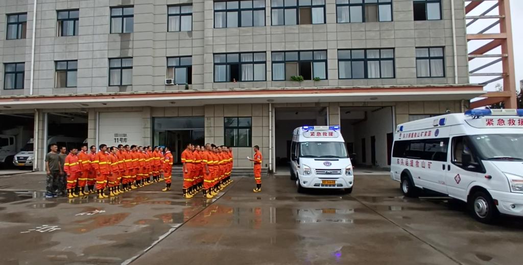 本次演練結(jié)合季節(jié)自然災(zāi)害特點(diǎn)及隊(duì)伍主要救援任務(wù),以暴雨造成城市內(nèi)澇小區(qū)地下車(chē)庫(kù)被淹和礦井火災(zāi)為背景,設(shè)置有:聞警出動(dòng)、排澇救援和災(zāi)區(qū)偵查、區(qū)域反風(fēng)、建造木板閉墻、急救包扎、傷員轉(zhuǎn)運(yùn)等多個(gè)訓(xùn)練科目,演練地點(diǎn)分別設(shè)置在公司礦山救護(hù)大隊(duì)排澇蓄水池和模擬演習(xí)巷道,共出動(dòng)指戰(zhàn)員60余人,投入救援指揮車(chē)、應(yīng)急照明發(fā)電車(chē)、排水、吊裝及火災(zāi)事故所需裝備50余件套。