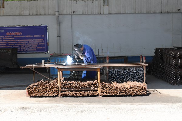 走進機電車間,首先映入眼簾的是鍛工組李根生,只見他一手拿著焊槍、一手拿著面罩,飛濺的焊花在面前四散開來,將一根根錨桿制作成鋼筋網(wǎng)片,為井下巷道支護提供可靠保障。青年職工李萬超俯身蹲在噴漿機前,對泵體、轉(zhuǎn)子、轉(zhuǎn)子軸、防爆電動機等部位進行逐一檢查試驗,確保設備安全可靠運轉(zhuǎn)。電焊工李峰、朱振宏加班加點為礦生活區(qū)、工業(yè)區(qū)加工制作排水溝防洪蓋,確保礦井安全度汛。