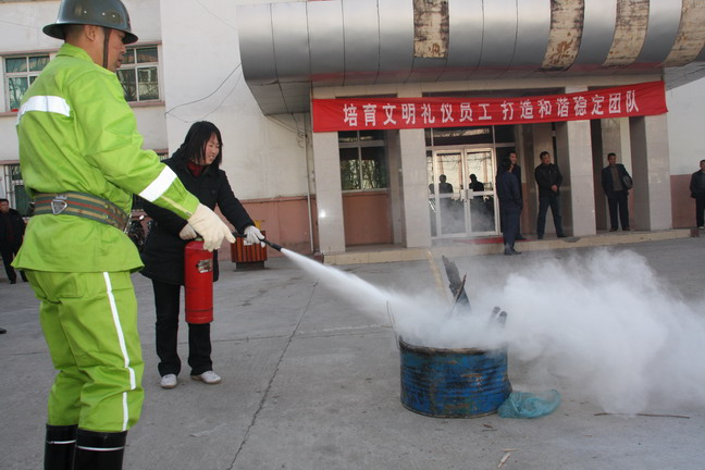 在演練過程中,該礦救護隊隊員為參加演練的基層消防員講述了干粉滅火器針對固體、液體、氣體不同燃燒物的使用方法以及演練的具體要求和注意事項;并現(xiàn)場演示了消防水帶的操作方法。隨后,參加演習的基層消防員在救護隊員的指導下,進行火災(zāi)撲救的實戰(zhàn)演習訓練,他們手拿著干粉滅火器輪番上陣,對準著火點噴灑,迅速將燃燒的大火撲滅。整個演習活動收到了良好的效果,達到了預(yù)期的目的。通過演練,增強了廣大干部職工的消防安全意識,提高了防火救災(zāi)和處理突發(fā)事件的應(yīng)急應(yīng)變能力,為構(gòu)建“平安礦區(qū)”奠定了堅實基礎(chǔ)。