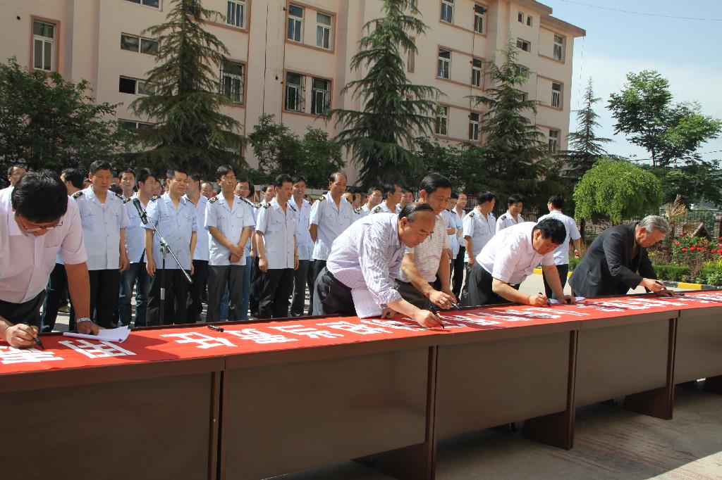 最后,公司黨政領(lǐng)導(dǎo)與干部職工、女工家屬協(xié)管員一起在寫(xiě)有“用行動(dòng)擔(dān)當(dāng)責(zé)任,用責(zé)任呵護(hù)生命”的條幅簽上了自己的名字,鄭重與安全簽約。