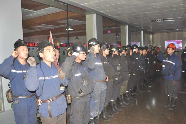 在井口,入井單位嚴(yán)格執(zhí)行列隊(duì)程序,逐一進(jìn)行安全確認(rèn)。尤其綜采二隊(duì),認(rèn)真執(zhí)行報(bào)告制,一一整隊(duì),強(qiáng)調(diào)重點(diǎn),集體表示:“我的安全,關(guān)系東坡的發(fā)展和榮譽(yù),關(guān)系家庭的完整與幸福,關(guān)系生命的質(zhì)量和意義。”并承諾:“忠誠(chéng)履職,恪盡職守,規(guī)范行為,珍愛(ài)生命 ,安全生產(chǎn)!”