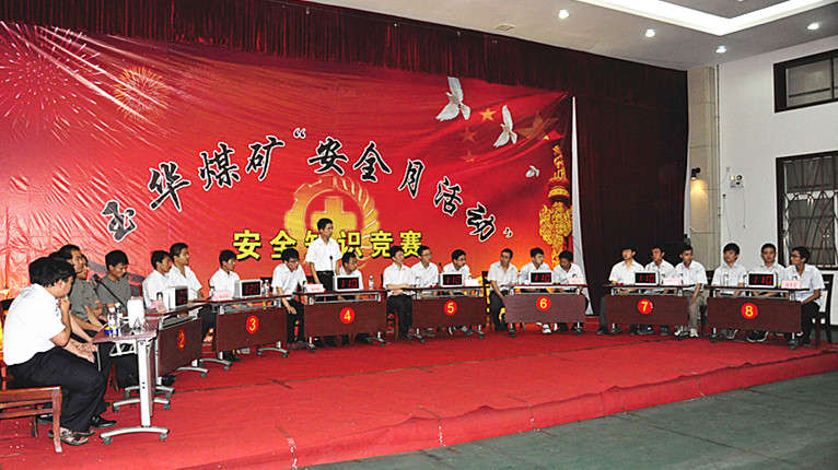 “安全第一,平安是福,安全生產(chǎn),幸福千家……”,活動(dòng)開(kāi)篇寄語(yǔ)道出玉華礦在安全管理中堅(jiān)持“以人為本”,舉辦職工喜聞樂(lè)見(jiàn)、寓教于樂(lè)的“關(guān)愛(ài)生命關(guān)注安全”安全知識(shí)競(jìng)賽等安全宣教活動(dòng),以此弘揚(yáng)安全文化、普及安全知識(shí),強(qiáng)化職工安全意識(shí),以礦井安全生產(chǎn)確保萬(wàn)家幸福團(tuán)圓,促進(jìn)礦井可持續(xù)發(fā)展的活動(dòng)宗旨。職工活動(dòng)中心內(nèi),在近500名“觀(guān)眾”的熱烈掌聲中,礦黨政領(lǐng)導(dǎo)作為本次競(jìng)賽評(píng)委落座仲裁席,來(lái)自綜采隊(duì)、綜掘一隊(duì)、綜掘二隊(duì)、通滅區(qū)等八個(gè)單位的代表隊(duì)選手,依次踏進(jìn)決賽場(chǎng)地,拉開(kāi)了本次競(jìng)賽帷幕。