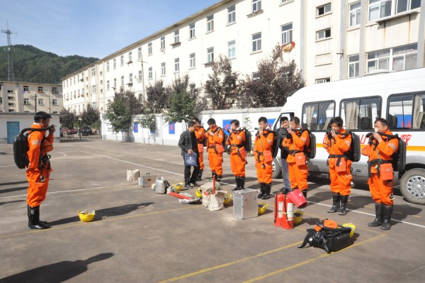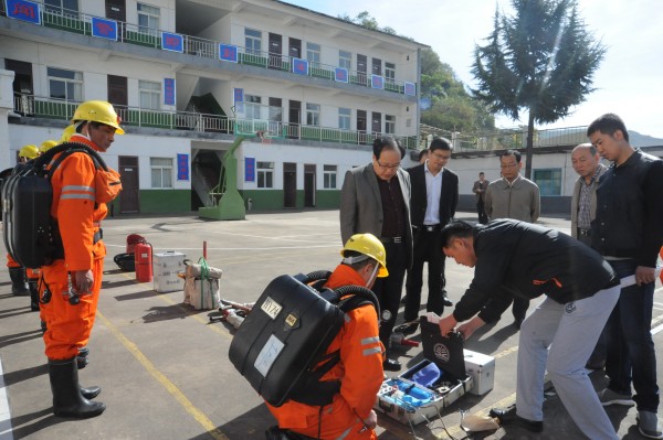 檢查組首先在訓(xùn)練場地觀看了救護(hù)隊(duì)員的列隊(duì)操練和應(yīng)急出動(dòng)救援演練。在應(yīng)急救援演練中,檢查組對救護(hù)隊(duì)伍及人員配備、救護(hù)培訓(xùn)與訓(xùn)練、救援裝備、維護(hù)保養(yǎng)與設(shè)施、業(yè)務(wù)技術(shù)工作、救援裝備、醫(yī)療急救、一般技術(shù)操作、綜合體制、軍事化、綜合管理等十大項(xiàng)內(nèi)容進(jìn)行了檢查考核。隨后,檢查組分別從儀器儀表的安裝配備、日常使用維護(hù)保養(yǎng)和檢測情況、通風(fēng)安全監(jiān)測監(jiān)控系統(tǒng)的安裝、使用和維護(hù)情況等方面對礦井“一通三防”儀器儀表的檢查考核。同時(shí),對救護(hù)中隊(duì)日常管理制度,隊(duì)員職業(yè)資格證書和“一通三防”儀器儀表保養(yǎng)臺(tái)賬進(jìn)行了實(shí)地查閱。
