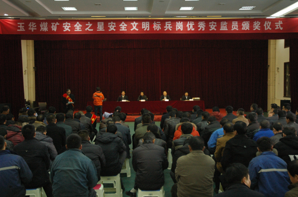 近日,玉華礦在職工活動(dòng)中心召開(kāi)“安全之星、安全文明標(biāo)兵崗、優(yōu)秀安檢員”表彰大會(huì),對(duì)評(píng)選出來(lái)的2015年12月份的5名安全明星及其家屬進(jìn)行表彰獎(jiǎng)勵(lì)。礦黨政有關(guān)領(lǐng)導(dǎo),機(jī)關(guān)科室、基層單位職工代表100多人共同參加會(huì)議。