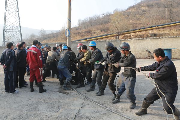 在二廣場(chǎng)工業(yè)廣場(chǎng)上,公司領(lǐng)導(dǎo)和該礦領(lǐng)導(dǎo)一行來到正在進(jìn)行更換鋼絲繩工作的干部職工中間,看到機(jī)電運(yùn)轉(zhuǎn)隊(duì)和掘進(jìn)一隊(duì)、掘進(jìn)二隊(duì)的廣大干群正熱火朝天、緊密配合的奮戰(zhàn)在更換鋼絲繩的戰(zhàn)斗第一線,主動(dòng)為他們送上慰問品。并與奮戰(zhàn)在現(xiàn)場(chǎng)的部室跟班干部、區(qū)隊(duì)干部職工親切交談,詳細(xì)詢問了更換鋼絲繩工作進(jìn)展情況,并囑咐大家要時(shí)刻把安全工作放在第一位,認(rèn)真組織好人力物力,細(xì)致做好每道工序,保質(zhì)保量完成工作任務(wù)。在更換的各項(xiàng)工作中,該礦分管領(lǐng)導(dǎo)現(xiàn)場(chǎng)跟班管理,區(qū)隊(duì)干部要認(rèn)真指揮,現(xiàn)場(chǎng)把關(guān)安全質(zhì)量,帶領(lǐng)施工人員嚴(yán)格按照措施要求實(shí)施各項(xiàng)作業(yè),參與更換鋼絲七十多名干部職工協(xié)同作戰(zhàn),充分發(fā)揚(yáng)煤礦工人特別能吃苦、特別能戰(zhàn)斗、特別能奉獻(xiàn)的優(yōu)良作風(fēng),克服人員緊張、施工條件受限、戰(zhàn)線長等不利因素,緊密配合,在安全的前提下,有條不紊的推進(jìn)工作進(jìn)度,全力以赴掃清運(yùn)輸安全隱患問題,保障礦井原煤拉運(yùn)工作不受影響,為礦井安全生產(chǎn)奠定堅(jiān)實(shí)基礎(chǔ)。