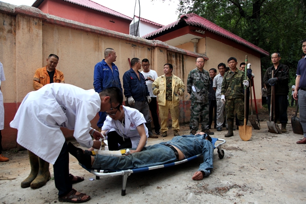 此次演練內(nèi)容預(yù)設(shè)該礦運(yùn)銷區(qū)辦公樓后山體因連日暴雨小面積滑坡,造成民房側(cè)墻垮塌,門前被淤泥封堵,房?jī)?nèi)一人被困,等待救援。接到事故救援匯報(bào)后,該礦立即啟動(dòng)應(yīng)急救援預(yù)案,現(xiàn)場(chǎng)救援組迅速趕往救援地點(diǎn),在應(yīng)急救災(zāi)總指揮部的指揮下,后勤保障組、醫(yī)療救護(hù)組、物資供應(yīng)組、治安穩(wěn)定組按預(yù)案責(zé)任分工有條不紊地開展救援工作,演練過(guò)程緊張有序、配合默契,圓滿完成了應(yīng)急救援演練任務(wù)。