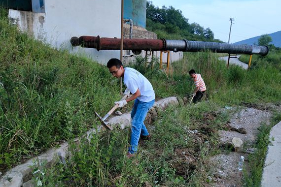在勞動過程中,廣大“三防”突擊隊員和機關(guān)黨員干部、團員青年積極發(fā)揚煤礦工人特別能吃苦、特別能戰(zhàn)斗的奉獻精神,全身心的投入到緊張的清理工作當中。由于排水渠緊挨山體,雨水沖刷淤泥、石塊、樹枝樹葉堵塞在排水渠當中,給清理工作帶來了很大困難。大家分工協(xié)作,有的用手搬,有的用锨挖,個個爭先恐后,甩開膀子大干,人人不甘示弱。大伙兒的勞動熱情高漲,不怕累不怕臟,哪里需要就干在哪里。 盡管參加義務(wù)勞動的隊員們每次勞動都冒著室外近三十多度的高溫,汗水濕透了衣服,滿身泥水塵土,甚至手被鐵锨把磨得通紅,但大伙兒的勞動熱情絲毫不減,心里只想著能早點排除險情,保證礦區(qū)安全度汛。