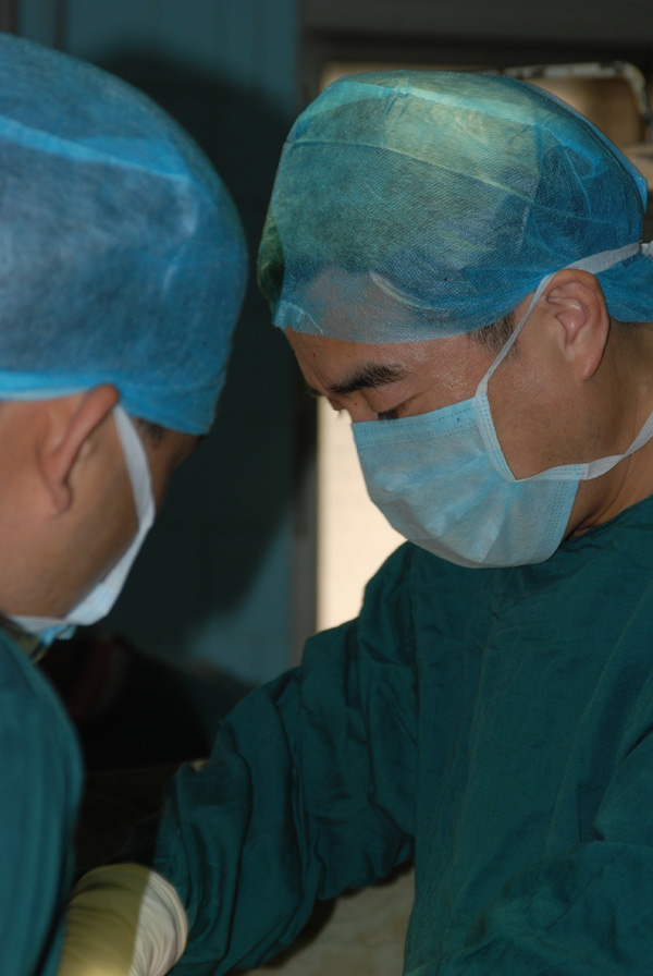 那是2002年的一個夏季,一陣急促的電話鈴聲將他從睡夢中驚醒,“石主任,來了一位工傷,胳膊被砸斷了,需要馬上手術(shù)?!彼挷徽f,馬上趕到手術(shù)室。一看病人,40多左右,斷去的肢體被嚴重污染,已成失血性休克狀態(tài)。石主任一邊指揮搶救,一邊尋找斷去的胳膊,“怎么沒有呢?斷去的胳膊在哪里?”“沒有找到?!薄榜R上找,一定要找到,這么年輕,一定要盡最大的努力保住肢體,有一線希望也不能放棄?。∵@關(guān)系到他的一生?。 彼麛嗟貙⒋蠓蚍殖蓛山M,一組清理休整遠端創(chuàng)面,一組進行近端清創(chuàng),一面焦急的等待尋找的斷臂。一個小時后,終于在煤堆中找到了斷臂,被火速送到手術(shù)臺上??粗呀?jīng)離開身體整整三個小時、被嚴重污染、缺失了血液,肌肉、血管神經(jīng)損傷嚴重的斷臂,石主任真的沒有把握能斷臂植活,但他看著昏迷中那張年輕的臉,怎么也不忍心進行截肢,抱著一線的希望,他開始艱苦的斷臂再植手術(shù)。時間在一分一秒的流逝,他臉上的汗在不停地滑落,整整八個小時,終于將斷臂吻合好。他不敢有絲毫的懈怠,每天仔細的觀察,給傷者鼓勵,功夫不負有心人,兩周后,再植的肢體成活了,功能逐漸在恢復,現(xiàn)在手功能已經(jīng)恢復到握持水杯的水平了。傷者和家屬激動萬分,一個勁說:“多虧了你呀,要不以后的生活該怎么過呀!”如今,他們已經(jīng)把石主任當成了自己的親人,逢年過節(jié)會打個電話問候一下,包谷成熟了,會捎來一小袋散發(fā)著清香的包谷面,禮輕情意重啊,這是心靈深處的感恩。