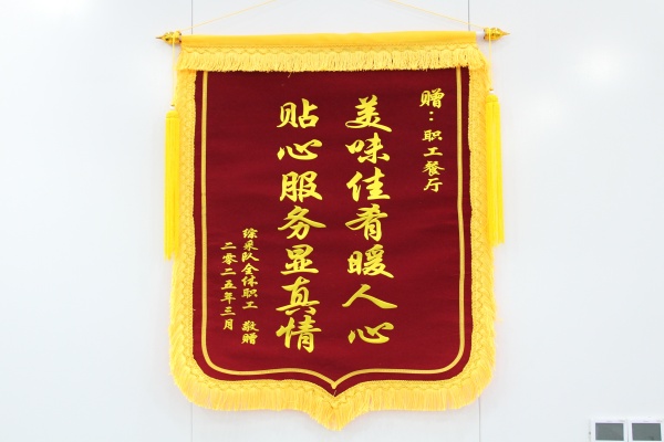 近日,柴家溝井職工餐廳收到了一面寫有“美味佳肴暖人心 貼心服務(wù)顯真情”十四個熠熠生輝的燙金大字錦旗,該面錦旗由綜采隊職工自發(fā)組織贈送,以表達對職工餐廳全體工作人員用心服務(wù)、真情付出的誠摯感謝。