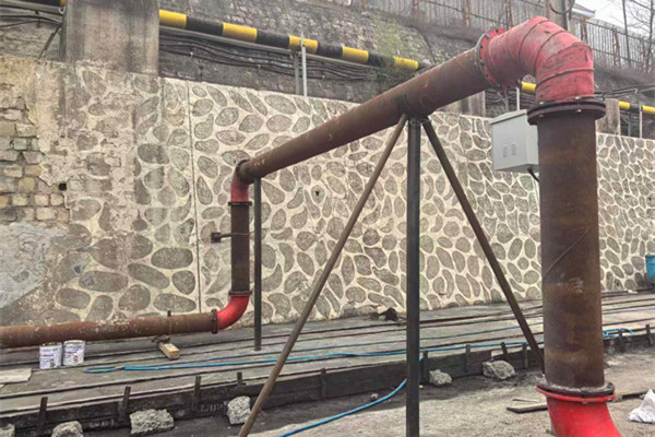 該礦將提升排水系統(tǒng)能力作為安全度汛的重要保障,在每年“清明”“谷雨”前后,制度化組織基層區(qū)隊實施排水系統(tǒng)維護工作,巡查檢修排水設備設施,進行排水溝清淤加固。結合巡查清單,礦井通過研究討論確定了副井口排水管路“龍門”改造方案。機電車間根據(jù)改造設計和安全生產(chǎn)標準化要求,從區(qū)域管路重新布置到“龍門”加工、安裝、連接等環(huán)節(jié),嚴格制定施工計劃,明確工藝工序工期和質(zhì)量標準。先用擋板擋住2號排水口,使用9根直徑325毫米的回收舊鋼管進行再加工再利用作為排水主管路,連接1號排水口,加工5個彎頭并使用4根管子作為立管,通過頂頭焊接包卡的方式,形成一個高4米、寬7米的“龍門”。