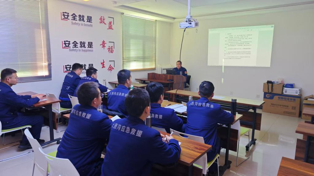 作為一支經(jīng)驗豐富、裝備精良的專業(yè)救援隊伍,公司救護大隊此次派駐的幫扶小隊由經(jīng)驗豐富的指戰(zhàn)員、技術員和救護隊員組成,攜帶便攜式呼吸器等專業(yè)救援裝備,針對大西溝礦地質(zhì)條件、開采工藝及潛在安全風險,制定具體幫扶實施方案,堅持“幫扶與提升并重、練戰(zhàn)與實用結合”原則,聚焦非煤礦山常見災害處置需求,從理論教學、體能訓練、實操演練、體系建設四大維度精準發(fā)力。