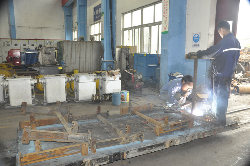 機(jī)修、電修兩個(gè)小組共17人,青工就有15人,在班長(zhǎng)老岳的帶領(lǐng)下,當(dāng)天要完成近40個(gè)H架修復(fù),以及溜子槽、礦車、綜保開(kāi)關(guān)等大件的維修翻新。并要運(yùn)用他們的智慧開(kāi)展“五小”創(chuàng)新活動(dòng),利用廢舊材料加工出溜子槽耐磨塊、新型漏斗擋煤器等物件,投入到生產(chǎn)中使用。那邊廂,機(jī)加組的三臺(tái)車床正在嗡嗡的響個(gè)不停,老師傅李根勝帶著兩名90后“小將”正在加工設(shè)備零部件。9點(diǎn)鐘,田陽(yáng)濤面前已經(jīng)擺放了20多個(gè)新螺帽,帶著方框眼鏡斯斯文文的小田掄起大錘也是毫不含糊,將鋼筋砸直后,在車床上熟練的車好了一個(gè)個(gè)螺絲,“這是井下回收來(lái)的‘麻花鋼筋’,硬度高,我們用它加工成一些存貨少而急用的緊固螺絲,以備不時(shí)之需.以前我總笑師傅用材料扣扣索索,把廢材料當(dāng)寶貝,現(xiàn)在我明白了‘勤儉’過(guò)日子才是“持家”硬道理”。