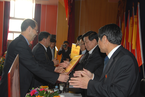 與會領導現(xiàn)場為先進集體頒發(fā)獎牌