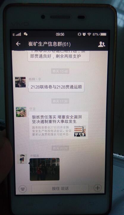 “請(qǐng)安質(zhì)部組織各單位認(rèn)真學(xué)習(xí)‘全國安全生產(chǎn)工作緊急視頻會(huì)議’精神,并展開事故討論,吸取教訓(xùn)”、“2128聯(lián)絡(luò)巷與2128運(yùn)順貫通”、“‘新三篇’資料已上傳,望各支部書記下載,組織本單位黨員干部進(jìn)行學(xué)習(xí),撰寫心得,做好記錄”……