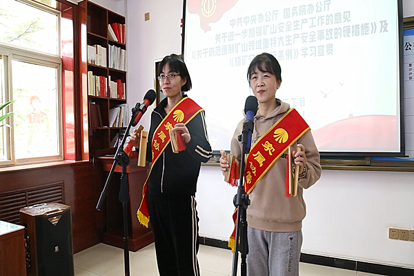 “各位礦工大家好,今天咱把《條例》和《措施》講,說(shuō)安全、講安全,安全責(zé)任大于天,硬措施要牢記……”。4月3日,陳家山礦工會(huì)女工委開展《中共中央辦公廳國(guó)務(wù)院辦公廳關(guān)于進(jìn)一步加強(qiáng)礦山安全生產(chǎn)工作的意見》《關(guān)于防范遏制礦山領(lǐng)域重特大生產(chǎn)安全事故的硬措施》《煤礦安全生產(chǎn)條例》宣貫活動(dòng),此次宣貫活動(dòng)形式多樣、內(nèi)容豐富,以宣貫法律法規(guī)、快板、觀看宣傳片等方式把各類安全知識(shí)貫穿整個(gè)活動(dòng)中,叮囑廣大職工樹牢安全意識(shí),時(shí)刻注意安全,做到上標(biāo)準(zhǔn)崗、干標(biāo)準(zhǔn)活,確保礦井安全生產(chǎn)。