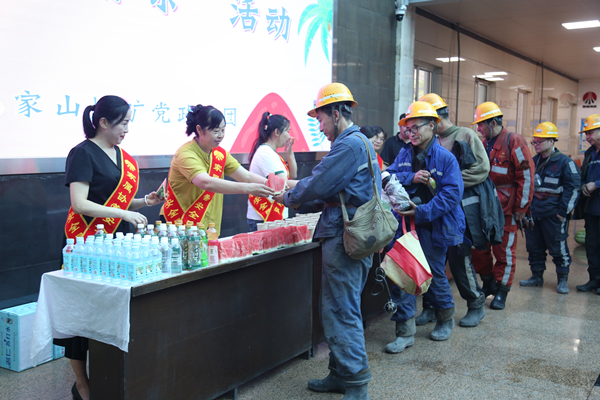 “大家辛苦了,下井注意安全,三伏天里,天氣炎熱,一定要做好防暑降溫工作,保障身體健康?!痹摰V女工協(xié)管員們將西瓜、綠豆湯、檸檬水、茉莉清茶等解暑物資送到職工手上,讓絲絲清涼沁入職工心田,并叮囑大家要遵守規(guī)章制度,保護自己及他人的安全。