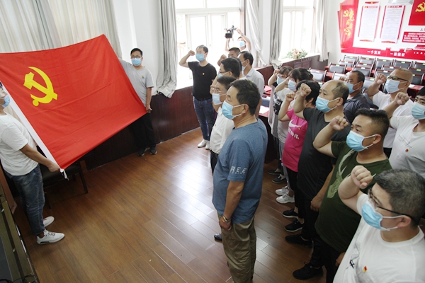 該礦在崗黨員面對黨旗、舉起右手,重溫入黨誓詞,以飽滿的熱情和昂揚的姿態(tài),表達著為黨的事業(yè)奮斗終身的決心和堅定信念。