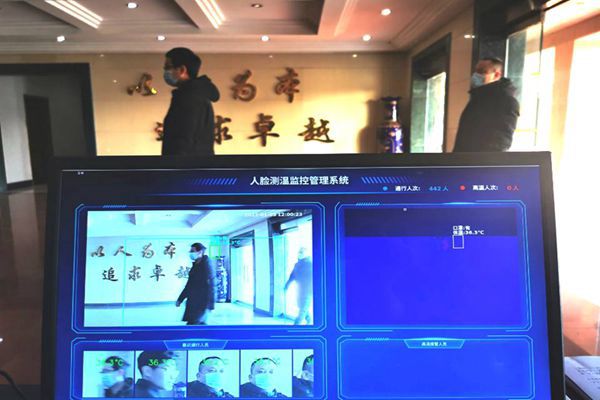 此次引進的智能檢測設備根據(jù)進出人員實際身體狀況,給進出辦公場所職工發(fā)出溫馨的體溫檢測和佩戴口罩提示聲音;同時可以將來往職工信息記錄并保存在管理系統(tǒng)當中,將傳統(tǒng)的“挨個接受檢測”變?yōu)椤耙淮螜z測全部”,在電腦顯示屏前就可觀測到路過人員體溫狀況,避免人工掃碼測溫和登記造成不必要的聚集,極大提高了體溫檢測效率和準確率,有效避免了因近距離接觸造成病毒傳播風險。