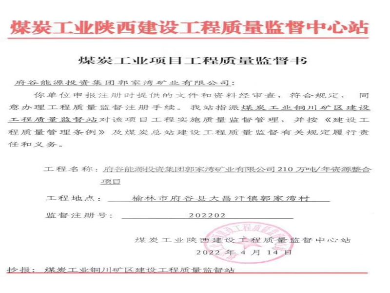 近日,銅川礦區(qū)工程質(zhì)量監(jiān)督站受省能源局煤炭工業(yè)陜西建設(shè)工程質(zhì)量監(jiān)督中心站指派,對府谷能源投資集團(tuán)郭家灣礦業(yè)有限公司210萬噸/年資源整合項(xiàng)目實(shí)施質(zhì)量監(jiān)督管理。