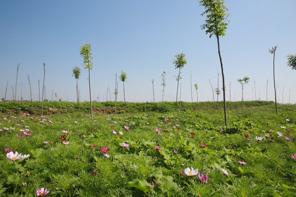 藍天、白云、垂柳、盛開的格?;?,美麗的景色就在眼前,這些不是電影中的畫面,也不是小說中的描述,這是如今東坡煤礦矸石山上的真實寫照。