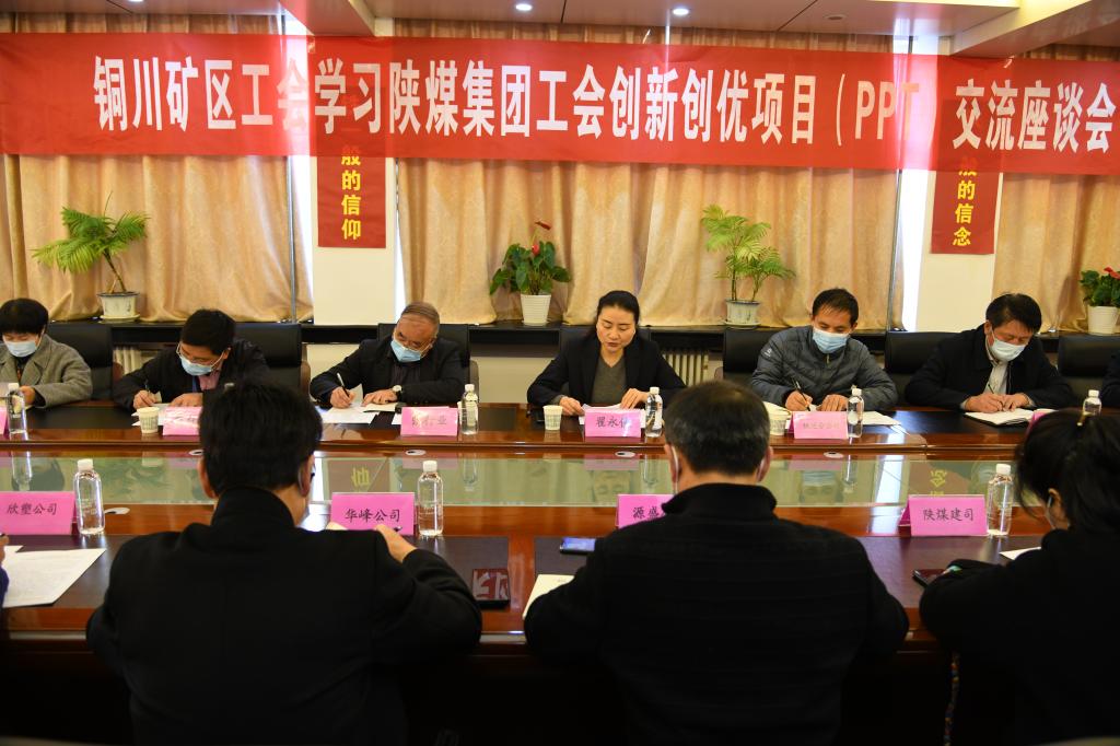 近日,銅川礦區(qū)工會在鐵運分公司召開了學(xué)習(xí)陜煤集團工會創(chuàng)新創(chuàng)優(yōu)項目PPT(市區(qū))交流座談會,鐵運分公司、救護大隊、華遠項目部、物資供應(yīng)分公司等13家市區(qū)單位的工會主席、副主席、女工主任參加了座談。
