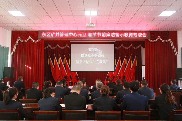 近日,東區(qū)礦井管理中心召開元旦春節(jié)節(jié)前廉潔警示教育專題會,教育黨員干部嚴(yán)守紀(jì)律“紅線”,不越廉潔“底線”,風(fēng)清氣正過佳節(jié)。