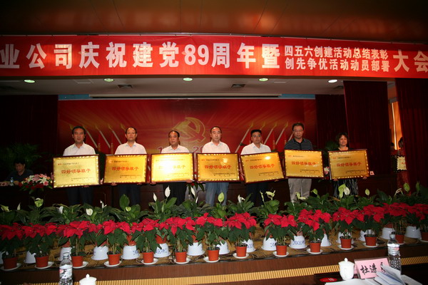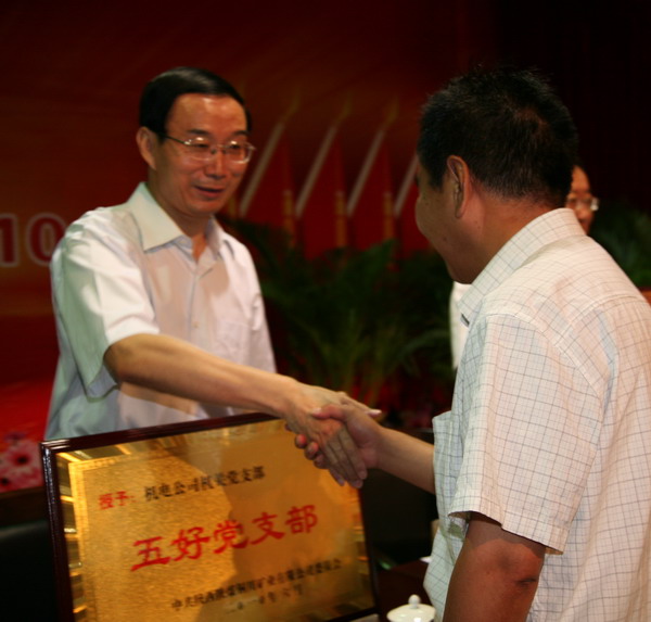 公司黨委書記杜樹山為五好黨支部頒發(fā)獎(jiǎng)牌