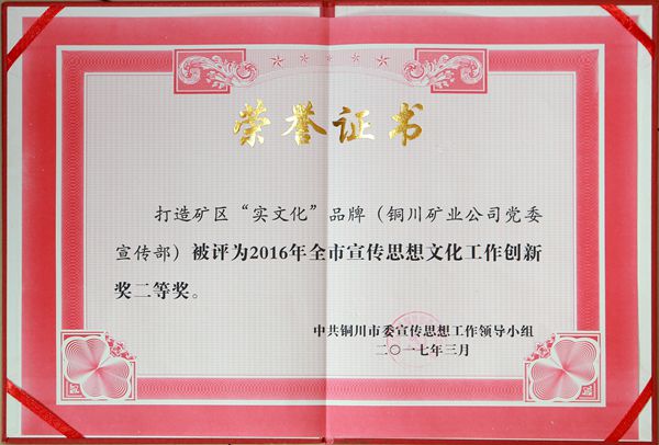 “天下萬物,皆成于實。”下石節(jié)礦始終堅持“文化強企”戰(zhàn)略,打造獨具特色的“實·文化”品牌,將企業(yè)文化與安全、生產(chǎn)、經(jīng)營、服務(wù)完美融合,以文化軟實力全面提升企業(yè)發(fā)展硬實力。在3月9日召開的銅川市宣傳思想文化工作會上傳來喜訊,下石節(jié)礦“實·文化”品牌被市委宣傳思想工作領(lǐng)導小組評為2016年全市宣傳思想文化工作創(chuàng)新獎二等獎。