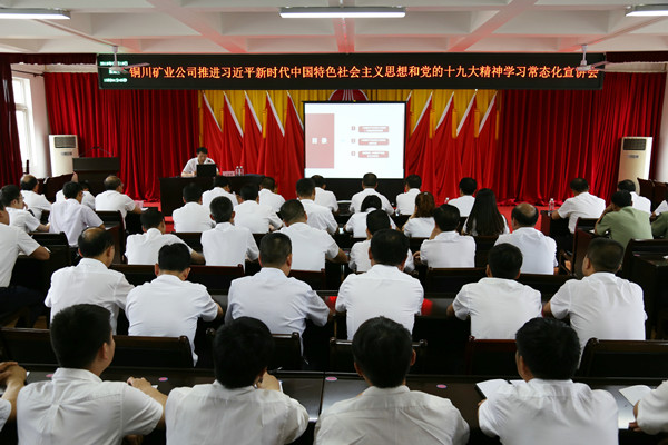 6月19日下午,公司推進(jìn)習(xí)近平新時(shí)代中國特色社會(huì)主義思想和黨的十九大精神學(xué)習(xí)常態(tài)化宣講會(huì)走進(jìn)陳家山煤礦,該礦黨政領(lǐng)導(dǎo)、副科級(jí)以上干部和機(jī)關(guān)部分職工共100余人參加了宣講會(huì)。