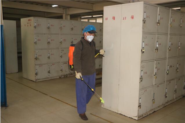 后勤服務(wù)中心的疫情防控工作主要包括項目部職工一、二號生活區(qū)人員出入監(jiān)測點,“兩堂一舍”、機(jī)關(guān)辦公樓、聯(lián)合辦公區(qū)、信息站、副絞房、礦燈房等區(qū)域的每天兩次打藥消毒。各疫情監(jiān)測點對返礦職工的詳細(xì)信息進(jìn)行登記,逐個詢問返礦職工春節(jié)期間的活動軌跡,測量體溫正常后,辦理了出入證,并對宿舍進(jìn)行消毒。