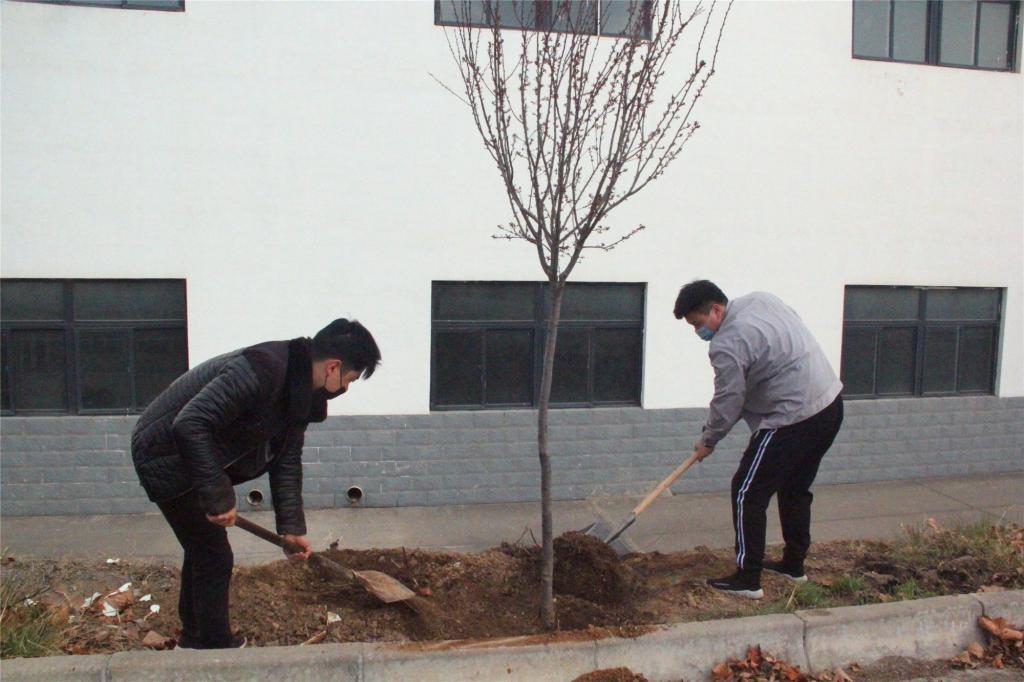 植樹現(xiàn)場(chǎng),大家分工協(xié)作,揮鍬鏟土、挖坑放苗、施肥澆水,火熱忙碌的身影沖淡了初春的絲絲涼意,經(jīng)過一下午的揮汗奮戰(zhàn),10多棵小樹在廠區(qū)找到了它們的新家,為公司增添了一抹生機(jī)勃勃的綠色。