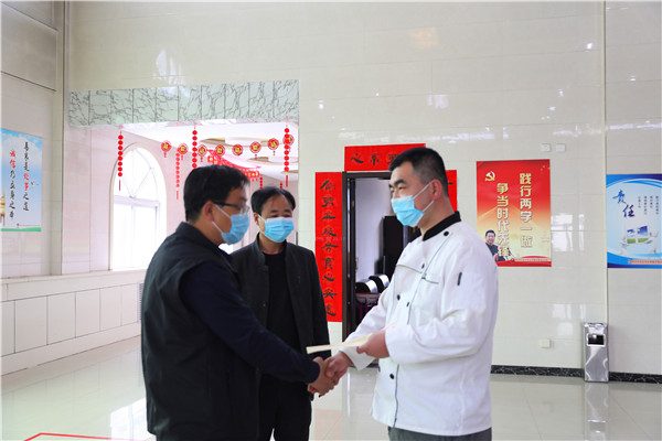 孟濤自春節(jié)至今一直堅守防疫崗位,在為一線職工做好餐飲服務的同時,他與班組中的青年團員主動請戰(zhàn),天天在食堂檢測點為大家測體溫,積極承擔起食堂區(qū)域日常消毒防疫工作。晚上回到家中,悉心照顧患病妻子。幫助防疫“戰(zhàn)士”渡難關,礦區(qū)群眾紛紛向伸出援助之手,關愛接力不停歇。