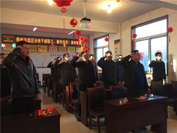 2月12日上午,新的一天安全生產(chǎn)工作即將拉開(kāi)帷幕。洗選區(qū)黨支部舉行“重溫入黨誓詞”主題黨日活動(dòng),支部書(shū)記講授一堂安全黨課,黨員面向黨旗,舉起右拳,莊嚴(yán)宣誓。溫誓詞、憶初心,強(qiáng)黨性、擔(dān)使命,黨員紛紛表示,在春節(jié)舉辦這樣一場(chǎng)活動(dòng),思想觸動(dòng)特別大,這個(gè)春節(jié)特別精彩。