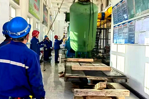 機(jī)電技術(shù)人員到達(dá)現(xiàn)場全面排查,迅速確定故障原因,充分討論診斷制定更換檢修方案。機(jī)電車間組建以“黨員突擊隊(duì)”為主要力量的檢修小組火速投入戰(zhàn)斗,全力保障設(shè)備更換維修。泵體重達(dá)16噸,需要拆卸的輔助設(shè)備多,機(jī)房空間狹小、室內(nèi)運(yùn)輸不具備條件。機(jī)電車間完善安全技術(shù)措施,明確施工工序,檢修小組開展專項(xiàng)風(fēng)險(xiǎn)辨識,黨員突擊隊(duì)積極想辦法、出點(diǎn)子。鋪設(shè)運(yùn)輸枕木道線,使用平板車將新泵體運(yùn)輸?shù)绞┕c(diǎn),工序銜接緊密、操作精準(zhǔn)熟練誤,隨著設(shè)備的拆卸、起吊和安裝,大家同心協(xié)力,克服困難,一個(gè)個(gè)難題迎刃而解。