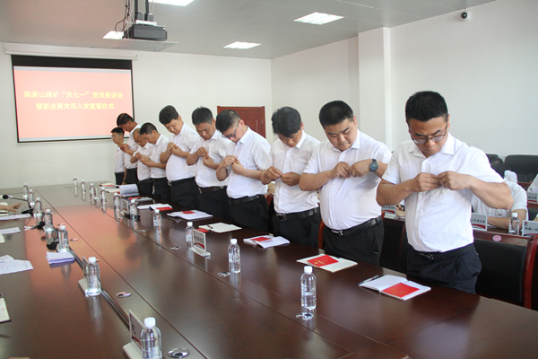 “我志愿加入中國共產(chǎn)黨,擁護(hù)黨的綱領(lǐng),遵守黨的章程……”鏗鏘有力的宣誓聲在陳家山礦會(huì)議室回蕩。該礦新老黨員一起面對鮮紅黨旗,舉右手齊肩握拳進(jìn)行莊嚴(yán)宣誓,以擲地有聲的錚錚誓言,表達(dá)了共產(chǎn)黨員的理想信念和價(jià)值追求。