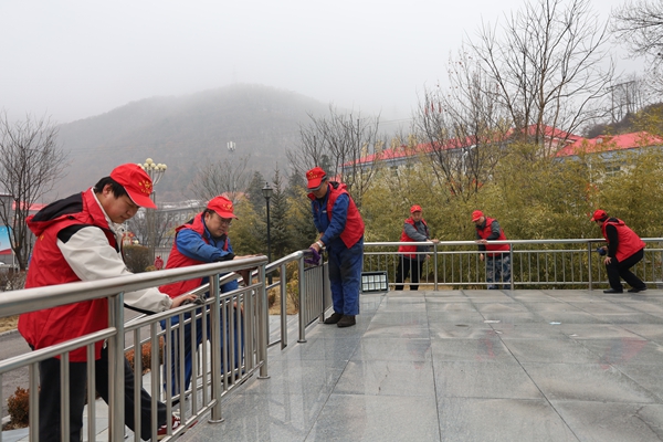 礦區(qū)辦公場(chǎng)所和主干道上,40多名身著紅色馬甲、頭戴小紅帽的青年志愿者們帶著拖把、抹布、臉盆、笤帚等工具開(kāi)展環(huán)境提升行動(dòng)。齊心協(xié)力擦亮文化展板,清理衛(wèi)生死角,撿拾花壇內(nèi)枯枝雜草。擦洗礦區(qū)主干道橋面石刻扶手、亮化燈帶和文化牌版,一個(gè)個(gè)紅色的青年身影,像一團(tuán)團(tuán)點(diǎn)燃的青春之火,用實(shí)干行動(dòng)“擦亮”和諧美麗礦區(qū)的文明底色,讓礦區(qū)環(huán)境煥發(fā)出新光彩,職工群眾好評(píng)如潮。