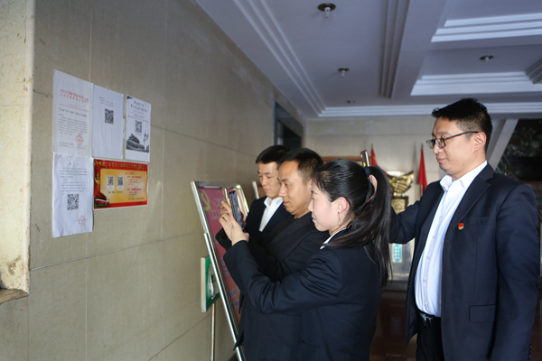 在該礦基層區(qū)隊學(xué)習(xí)室里,區(qū)隊領(lǐng)導(dǎo)利用班前會時間及時宣傳動員,引導(dǎo)職工積極主動的參與到關(guān)注公司微信公眾號的行動中來。大家高興的說,拿起手機輕松“掃一掃”,公司發(fā)展的大事小情啊,我們第一時間就知道了。